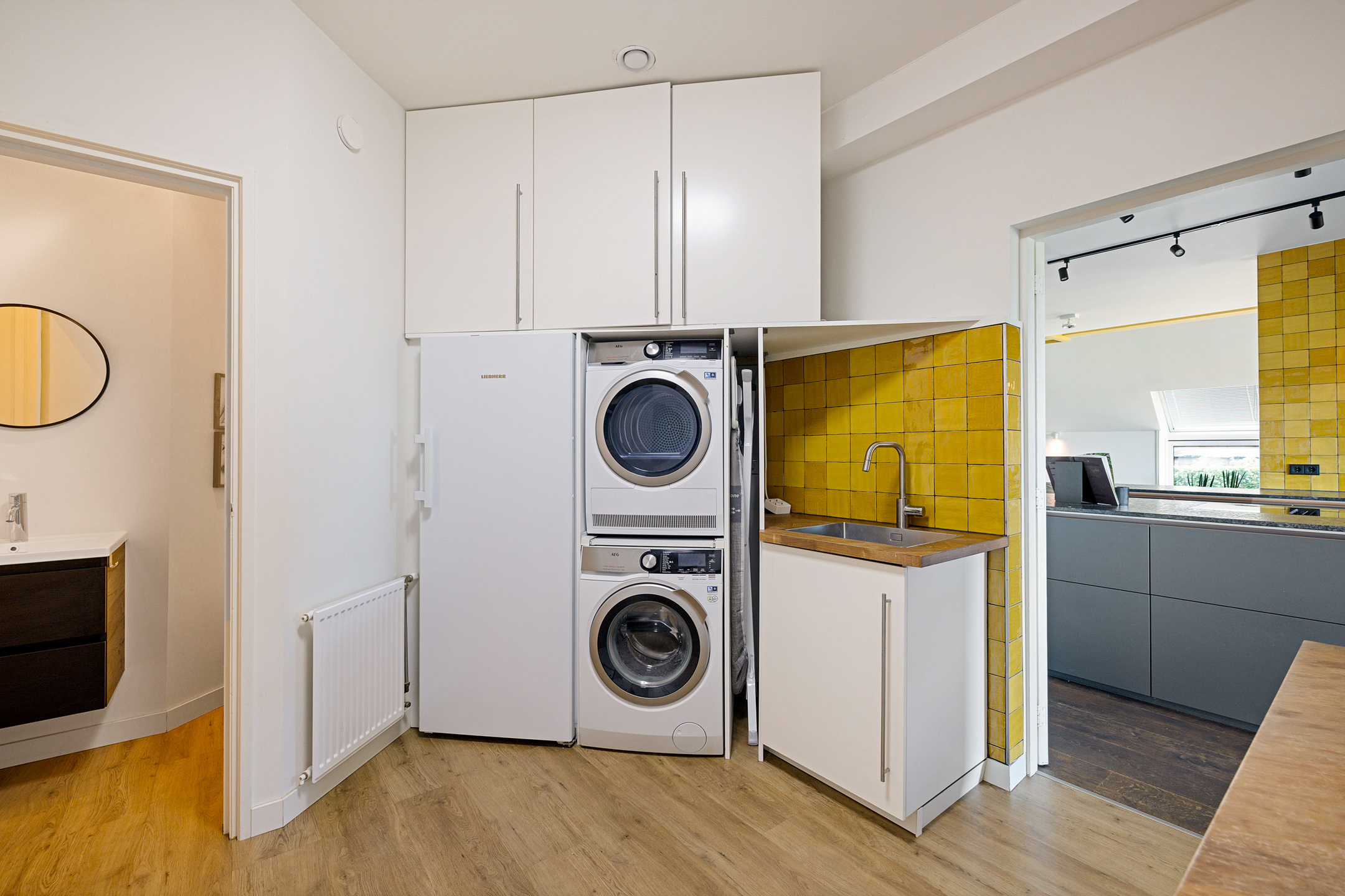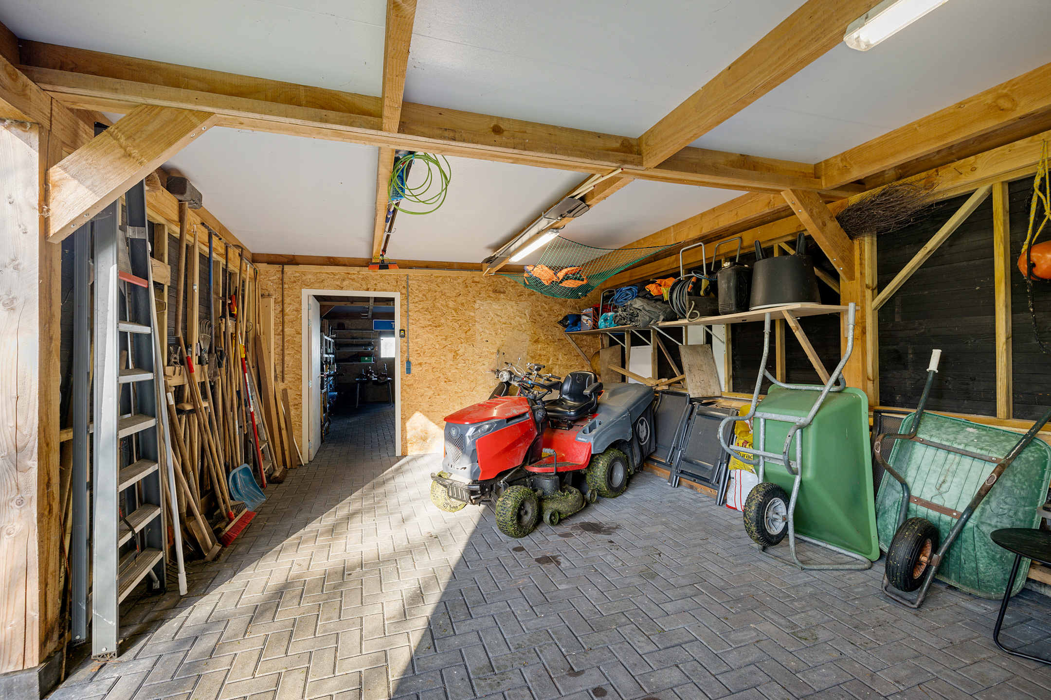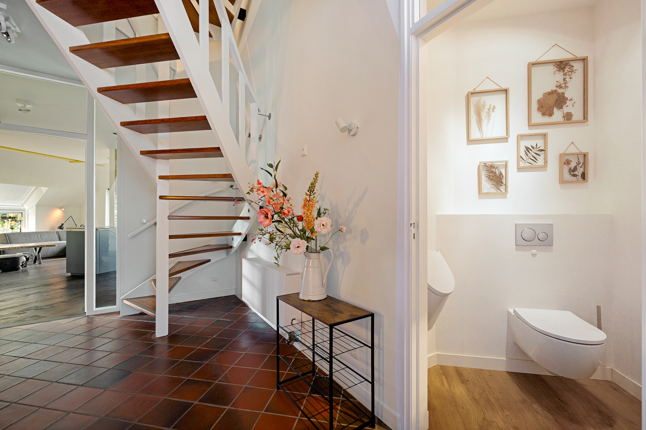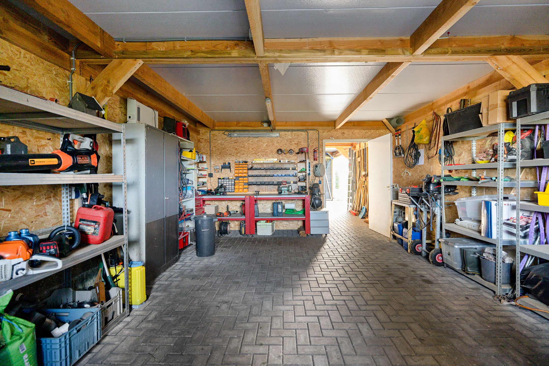 Aangrenzend ligt een royale ruimte van 38 m², nu in gebruik als kantoor, maar ook perfect als atelier, speelruimte of gastenverblijf.