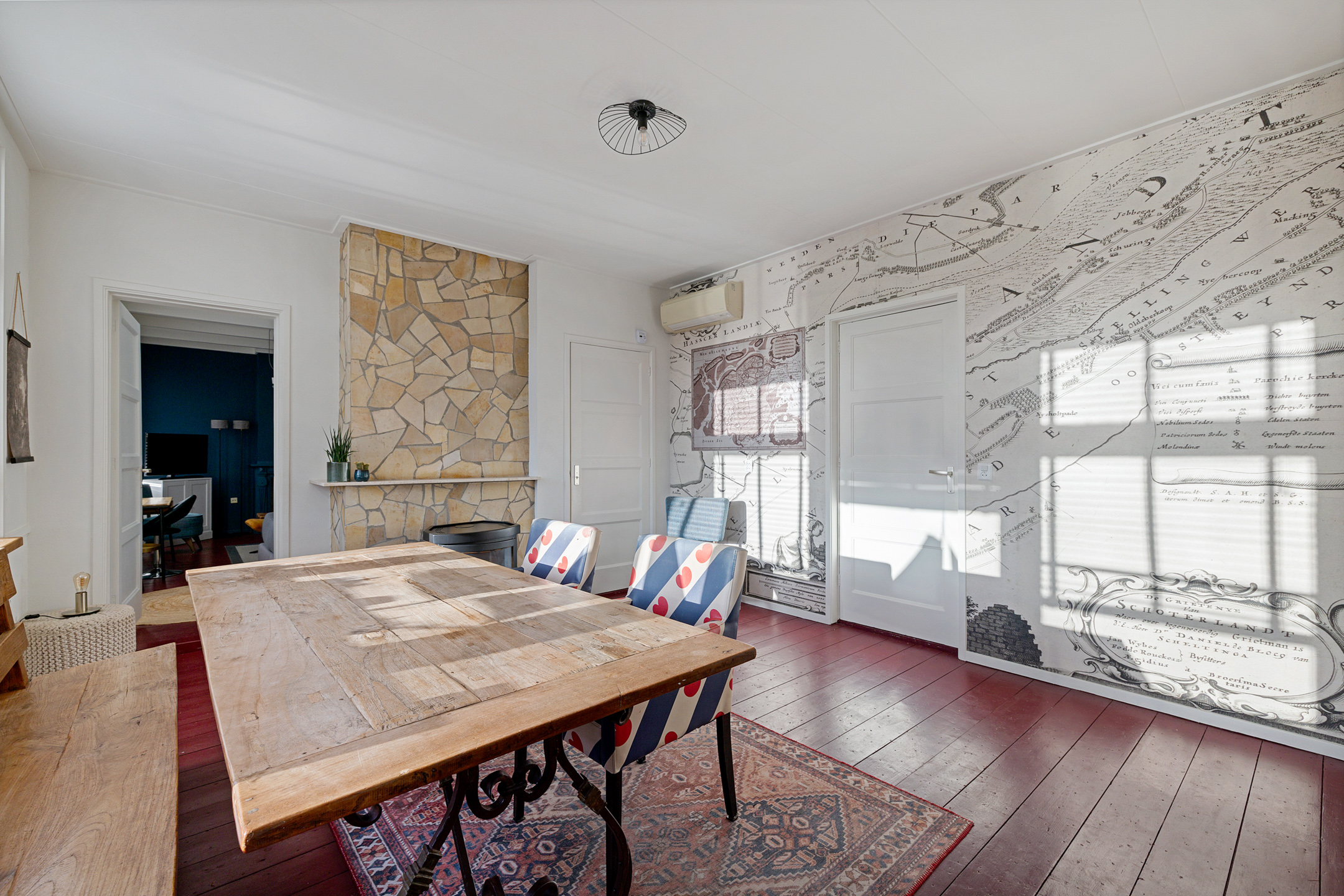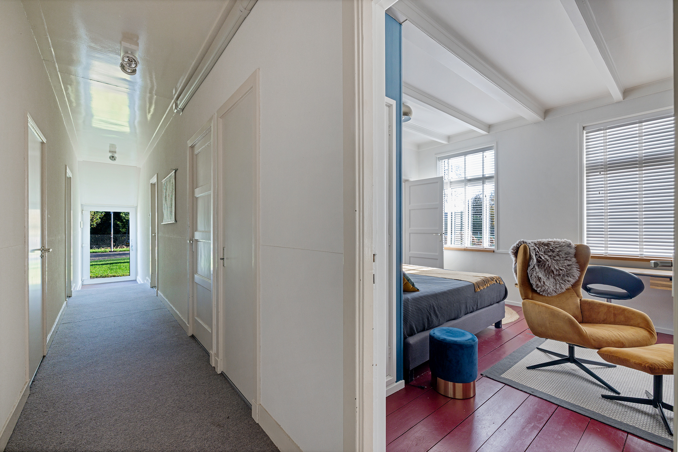 Het voorhuis heeft een eigen entree en is volledig ingericht met keuken, eetkamer, woonkamer, badkamer en 4 slaapkamers. Hierdoor is het uitstekend geschikt voor dubbele bewoning, mantelzorg of verhuur aan gasten.